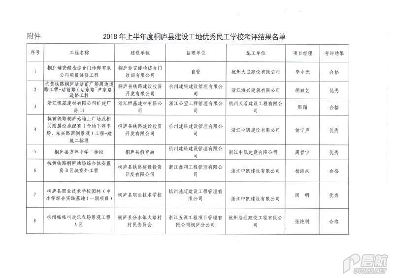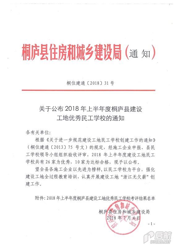 2018年上半年度桐廬縣建設工地優秀民工學校