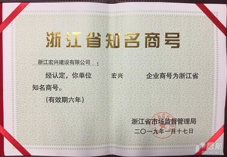 近日,公司收到了來(lái)自浙江省市場(chǎng)監(jiān)督管理局頒發(fā)的,“浙江省知名商號(hào)”證書(shū)。公司“宏興”商號(hào)喜獲2018年度“浙江省知名商號(hào)”。